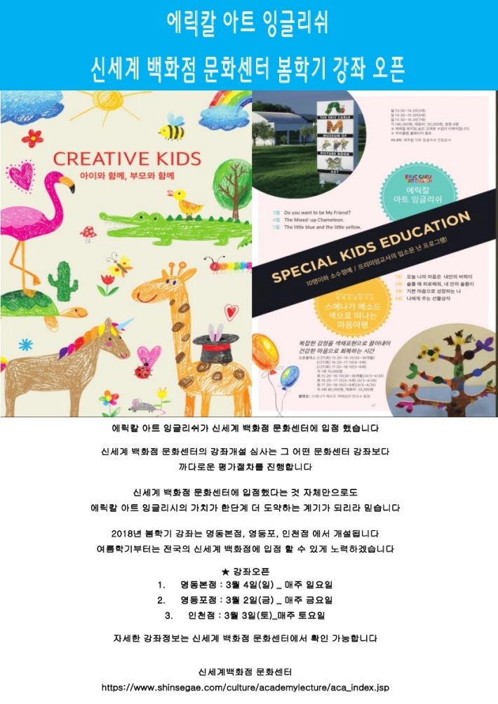 에릭칼 아트 잉글리쉬를 이제 신세계 문화센터에서도 만나 실 수 있습니다